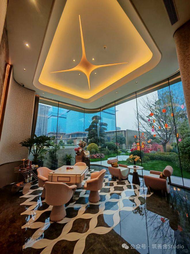 沐芳洲解决了抬高式项目从地面G层上到平台架空层的最佳动线方案。相比同系作品,沐芳洲进一步迭代。在多维架空空间里,规划了高差近10米约740㎡的下沉庭院、约1600㎡的室内恒温泳池、健身房等会所,并设置了层高约7.2米的童玩空间、阶梯书吧等多功能场所。