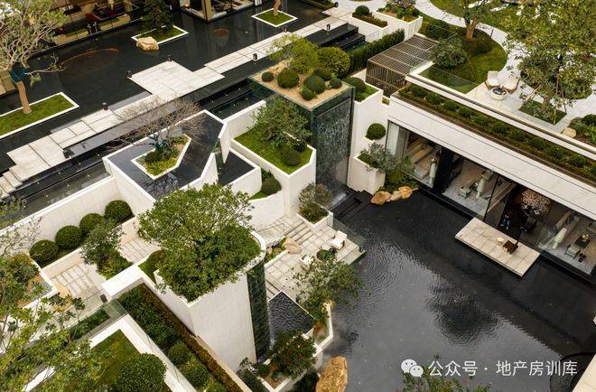 景观呈现的是一个立体的、全境洄游的园林。下沉庭院、镜面水院、阳光草坪,以多维垂直的角度,诠释着风景与日常生活的深度交融。