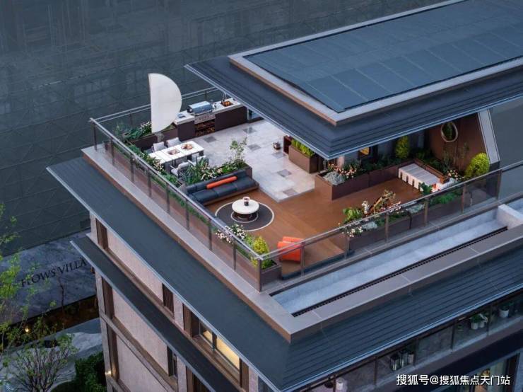 更令人向往的,是上叠的 大面积屋顶露台 。它是星空观景台,也是屋顶花园,既能举杯畅谈,也能静赏四季流转,把生活推向更诗意的层面。