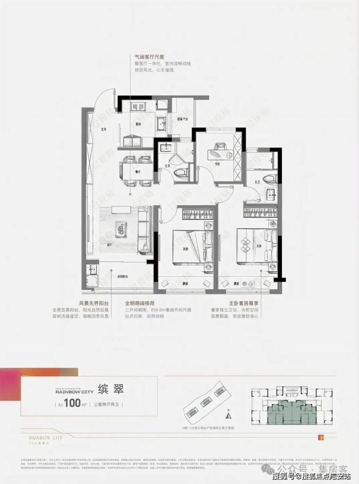 建面约100方户型: