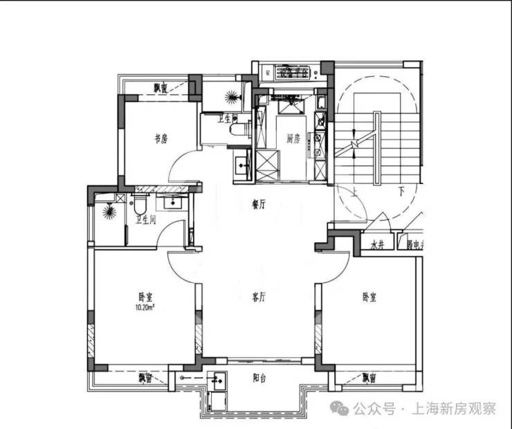 上、下两层二合为一,与标准房的结构方面有区别。