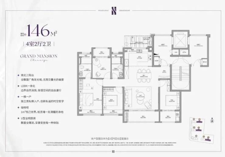 项目建面约146㎡户型更是划时代的做到了3阳台设计,尤其是南向约8m的超跑级阳台,非常震撼。
