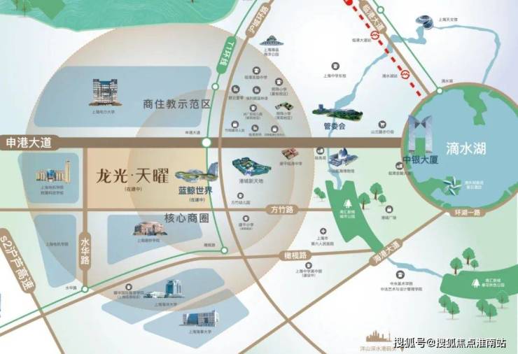 【龙光·天曜】就位于商住教示范区的门户核心位置,从上海市区自驾来临港,经S2沪芦高速(已全程免费)下闸道进入申港大道,首先映入眼帘的就会是滴水湖首个天际坐标——龙光蓝鲸世界百米酒店。这个酒店也是【龙光天曜】建面约50万方综合住区的商业配套部分。 龙光天曜售楼处电话400-8673-567✅✅✅