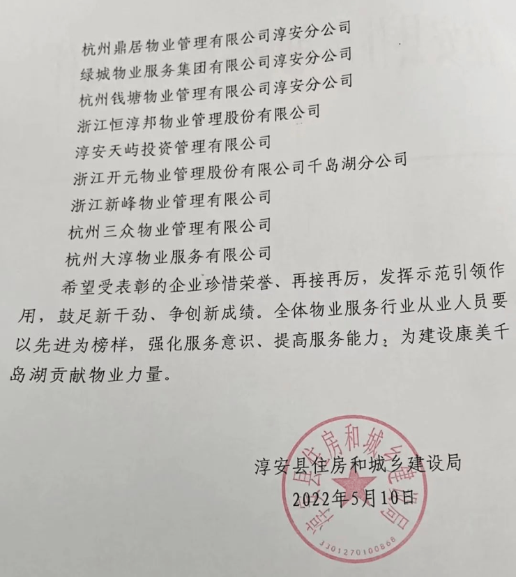 天屿在2008和2014两年被评为“全国十大豪宅”; 而与之相应的天屿物业接连4年在淳安县近30家物业服务企业中获评优秀物业服务企业,可见服务之品质。