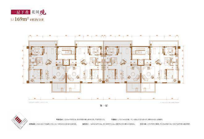 建面约169㎡4房2厅3卫(一层下叠):