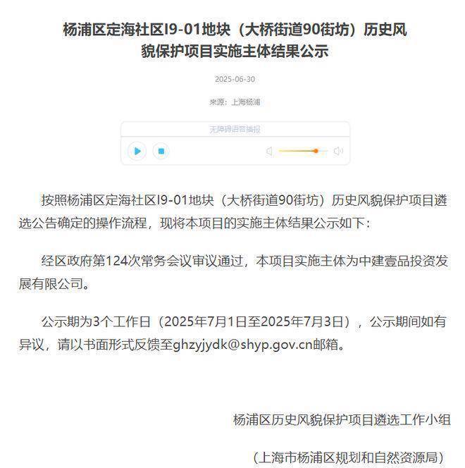 前段时间,杨浦定海社区I9-01地块(大桥街道90街坊)历史风貌保护项目遴选结果公示:中建壹品投资发展有限公司成功拿下杨浦大桥街道90街坊地块
