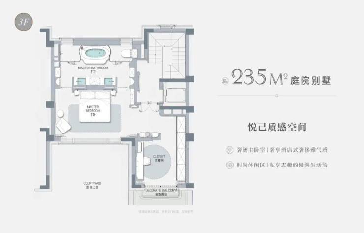 三楼整层总统套房设计,预留独立书房、衣帽区、双台盆卫浴空间,一层一天地,在此书写人生的伟业。桐安里售楼处电话:400-9016-520⭐⭐