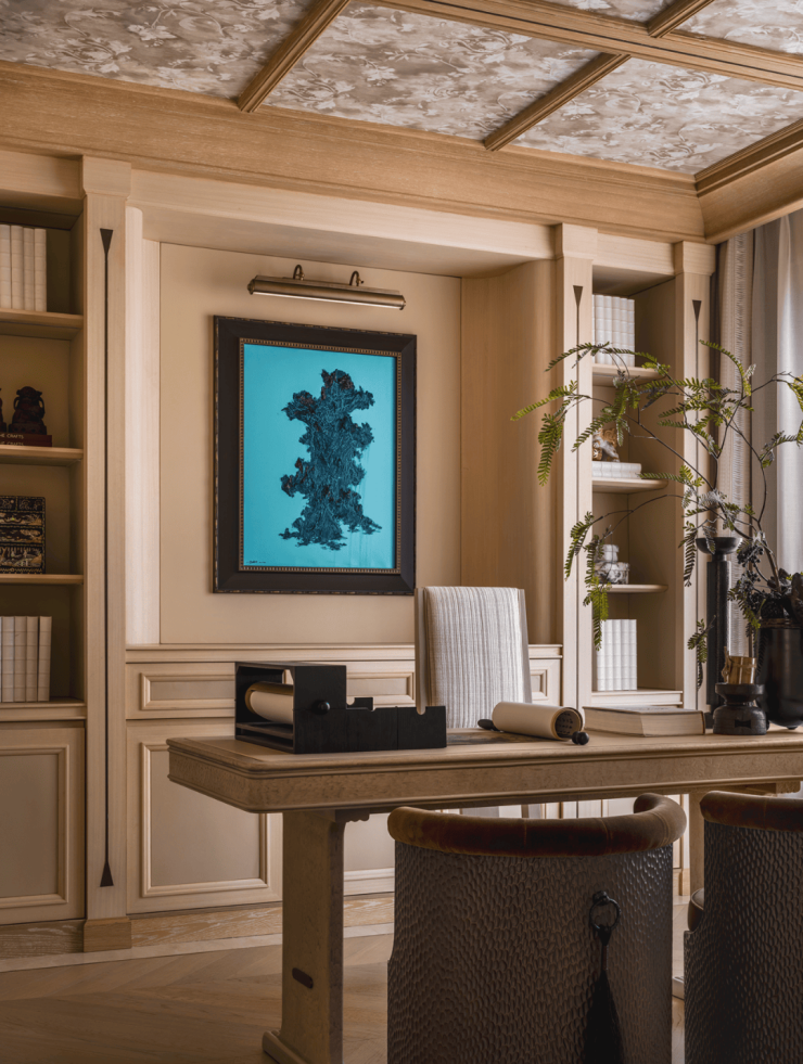 三层的书房、衣帽间等空间,更好的体现了复古、折衷主义审美的优势,将更多法式元素融入其中,中和了过多中古元素造成的肃穆,让换衣、阅读、办公的过程能够在一个相对纯粹的空间进行。艺术家赵玖的《天青》在空间中不仅仅是墙上的画,而是墙在竭力禁锢一片即将爆发的天空。 桐安里售楼处电话:400-9016-520⭐⭐
