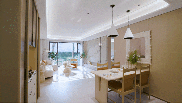 约10.6米南向面宽、可轻松容纳6人圆桌的餐厅、主卧配备270°转角窗,这套配置组合在以往的市场认知中,至少需150㎡以上大户型才能承载。这也体现了时代云境对新规的全新认知和创新,不仅是得房率的提升,更是舒适度的升维。