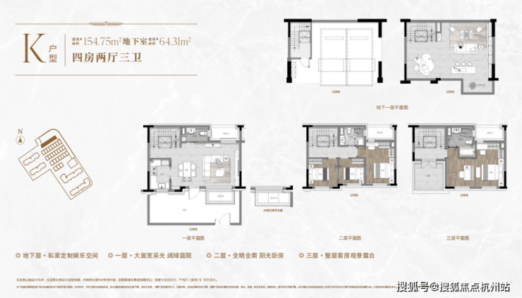 一楼和地下室主社交和志趣,二楼是子女的房间,三楼是主人休憩区。楼上楼下分层而居,各享私密,让子女私密主场与父母的静谧天地,互不干扰,即使业主举办小party玩到深夜,也不会打扰长辈们休息!