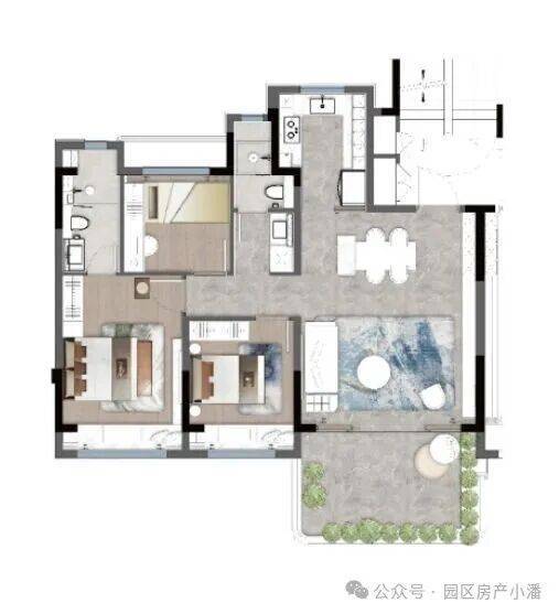 建筑面积约120㎡ 三房两厅两卫超享尺度|约6m横厅布局|酒店级主卧套房|约17㎡露台花园|3+X灵动空间