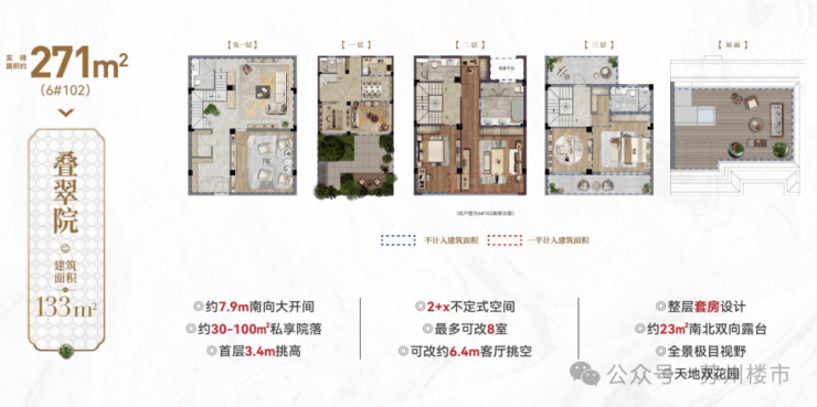 都是地上三层舒展格局,地下百变天地的结构,再加上“有天有地有院”的硬核配置,每一套都相当出色。