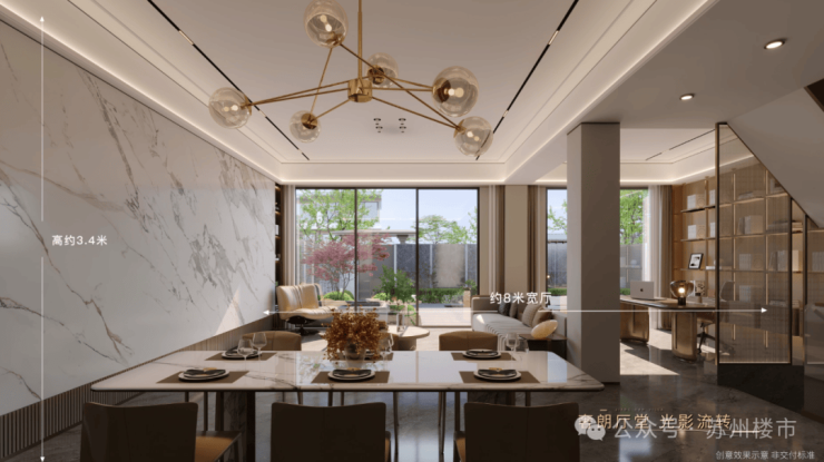 约7.9米南向开间,外接私家花园,有天有地,独门独院,这里既是一家人互动交流的温馨空间,也是宴请宾客、家庭聚会的自在场域。这种安全性和私密感,是其他业态产品所达不到的。