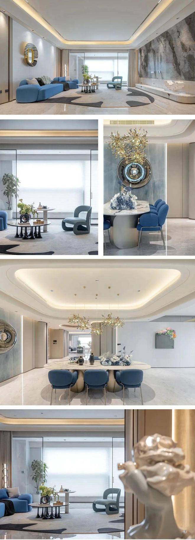 ✅滨江·潮观凤起营销中心热线4008558224(官方预约看房热线)步入样板房内,目之所及,遍布芬迪白、喜马拉雅灰、雪山蓝等名贵奢石,将“浮华”二字堆砌得恰到好处;除此之外,大量深色木饰面的运用,则让整体风格显得低调而沉稳。吊顶、墙面,随处可见的弧形元素,炫技的同时又增添了温馨调性,奢华中带着松弛感。
