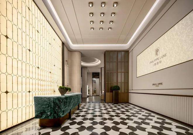 虽然体量不大,却舍得铺排气场。它定制了璞丽酒店式的长廊门庭,别的楼盘在拼门头宽度,它在营造归家的“纵深仪式感”。