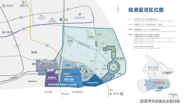 同时,临港新区以“3条国铁,6条市域”的规划打造轨道上的临港,并形成一主一副(上海东站、四团枢纽)的枢纽规划布局,而四团枢纽并不在四团镇中心,而是在两港大道北侧约600米!位于两港大道南侧的临港蓝湾国际社区与四团枢纽并不遥远!