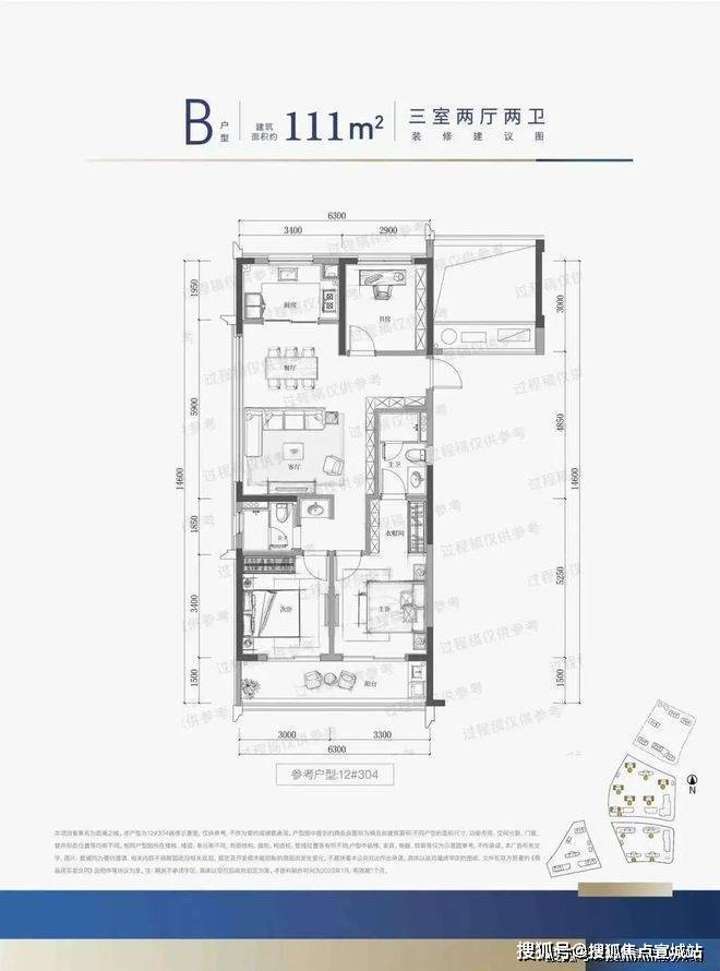 建面约111方户型:建面约111方三房两厅两卫边套户型,极其方正,无论格局还是尺度,都拿捏地恰到好处。豪华餐客厅,摆下收纳柜也不显局促。拥有一整面墙的采光,在家不开灯也很亮堂。户型南卧旁还拥有一个约6.3米的双联阳台,整体户型窗墙比也很大,可以说是难得一见的“阳光房”。