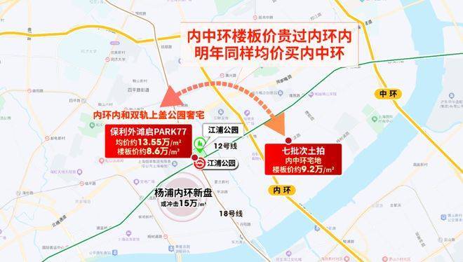 其一,七批次土拍,杨浦内中环宅地楼板价高达约9.2万/㎡,已高过内环内的保利外滩启PARK77(楼板价约8.6万/㎡)。