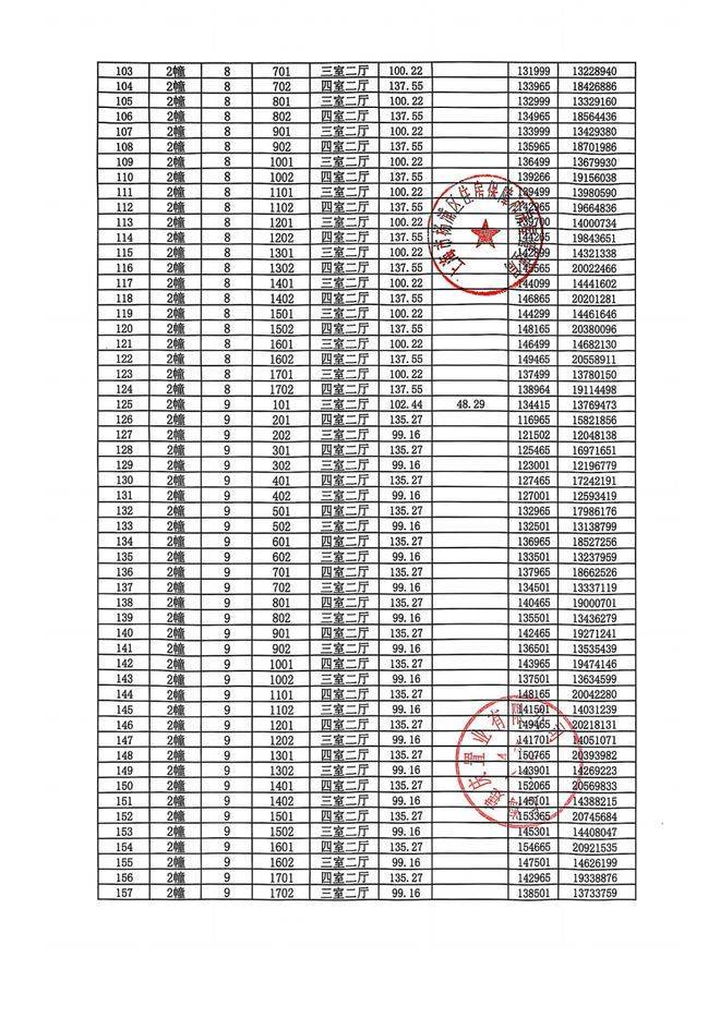 完整一房一价表如下: