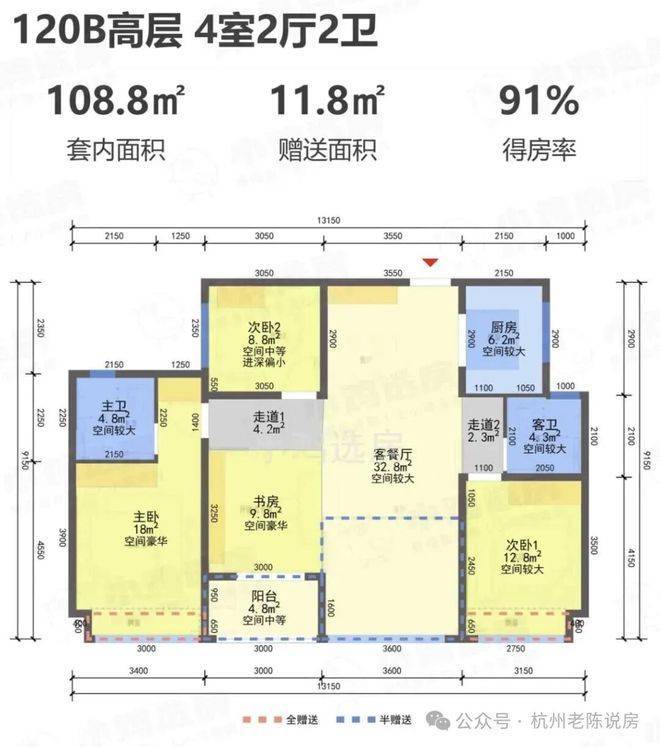 阳台仅算一半建筑面积,实际得房率极高!