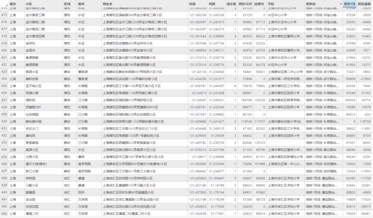 如果我们再聚焦一点,以苏州河为例,我们梳理了2021-2022年苏州河流经的五个区(包括黄浦区、静安区、普陀区、长宁区、虹口区)内的1067个小区的总计4653条房价数据: