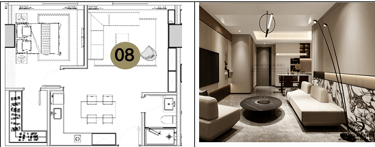 右侧U型厨房,更符合人体工程学,可多人同时操作,中西双厨,餐厨一体。
