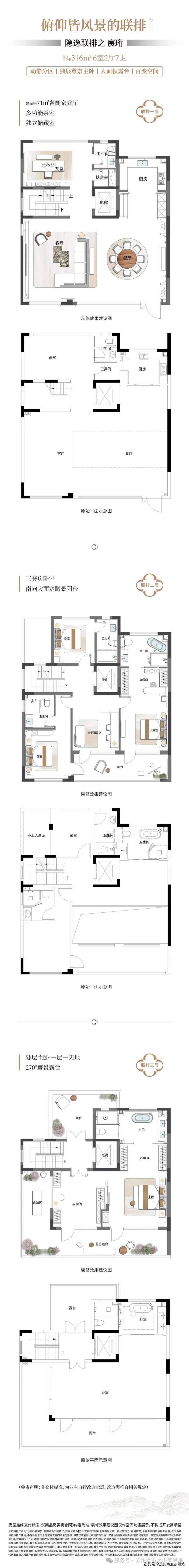 户型配置:联排约286-316㎡/叠加约220-260㎡/洋房约156-190㎡