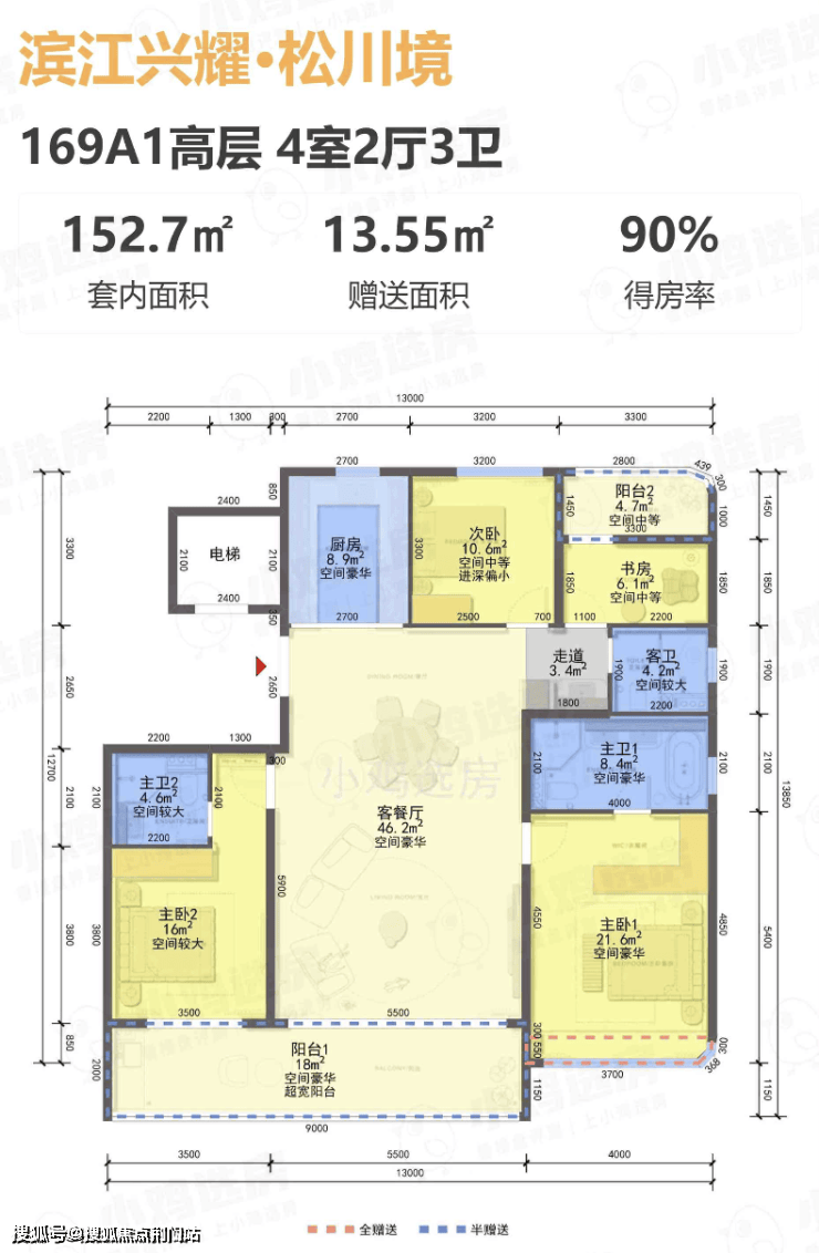 建面约169方户型,总价约700-820w,这个户型肯定抢手,一方面是户型本身优秀,另外总价段也直接错开了周边新房的竞争。