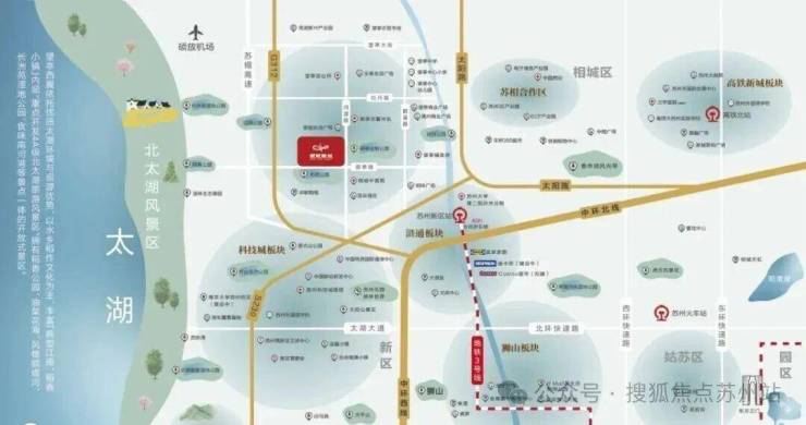 「交通」中环西线北延、312国道、太阳路、高铁新城区站、地铁3号线浒关站、硕放机场