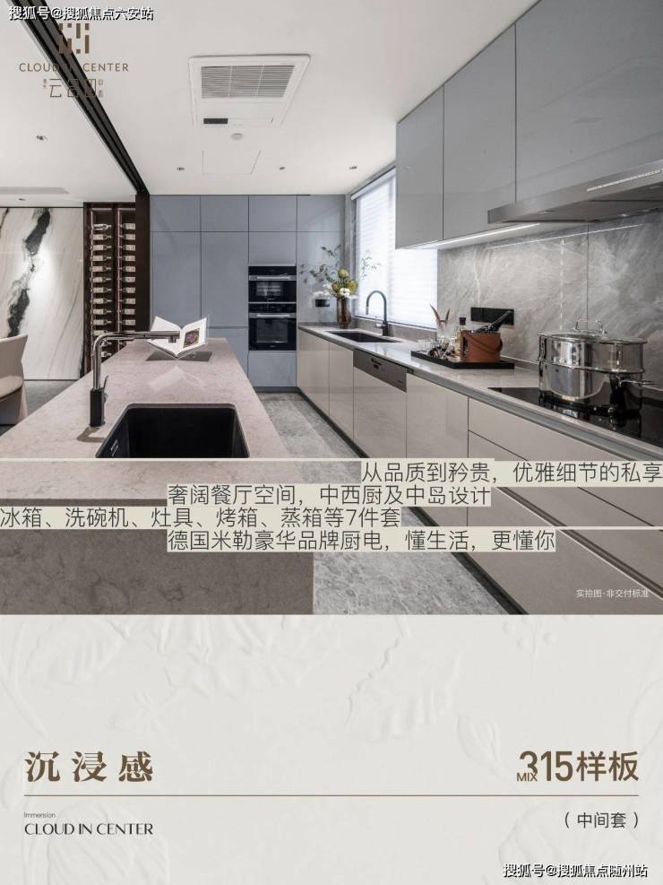 云合印中心在精装标准上追求极致,选用了一系列国际一线奢侈品牌。厨房配备德国米勒豪华品牌厨电7件套,采用嵌入式设计,将厨电完全嵌入橱柜中,中西双厨设计满足不同烹饪需求。