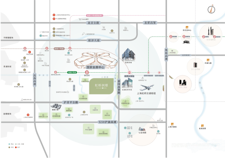 虹桥润璟不仅位于虹桥主城,更位于虹桥主城国家会展中心正核之位,不止于坐享国展进博的磅礴时代红利,更拥享国展为核心的3KM烫金生活圈。
