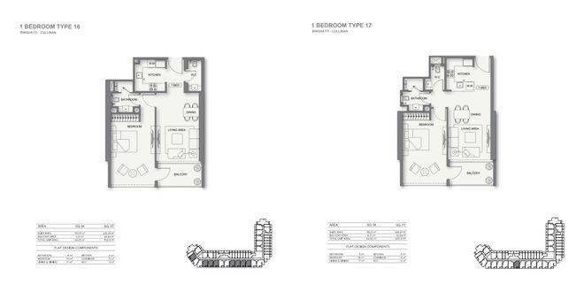 面积:62.89㎡-81.75㎡ (677sq.ft-880q.ft)