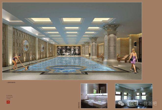 约250-380㎡私家室内泳池、约200㎡视频会晤空间,约220㎡套房式主卧,可容纳4-6个室内私家车位(以上均为建筑面积)