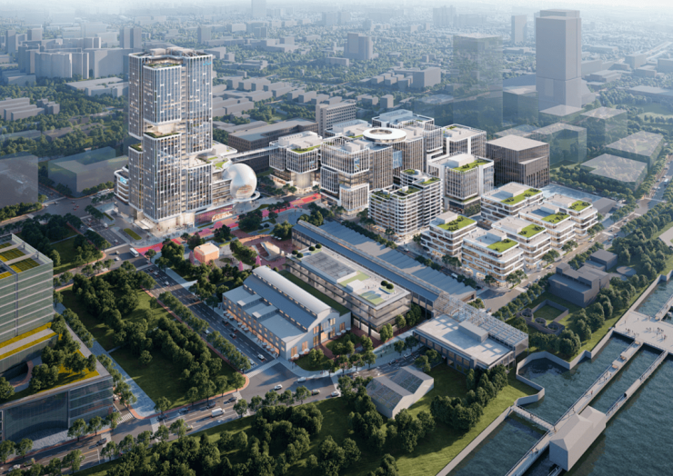中铁置业杨浦滨江九宫格97街坊项目(I4-01地块)建设用地面积约1.65公顷,容积率仅1.8,建筑限高24米,是上海中心城区罕见的低密滨江宅地。项目规划拟建7栋4F叠拼、5栋6—7F洋房及1栋8F保障房,这是板块内稀缺的现代叠加产品,也是杨浦滨江板块唯一容积率1.8未入市低密普宅。