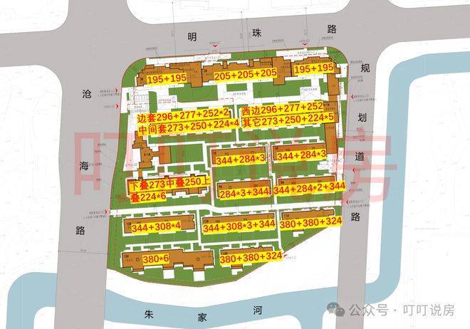高层2幢共14层,均为195㎡;洋房9层两梯三户,均为205㎡。