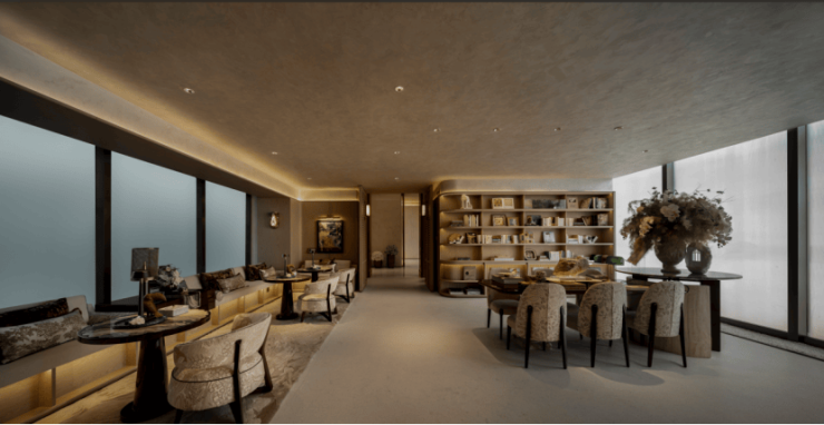 此外,海上·清和玺将奢宅的功能充分融入空间思考,留有专属的访客车位,私人司机休憩室、VIP业主洗车等。在场域设计中,空间展开成星级酒店式、可社交的中央场所,访客和业主可实现无界的会所观赏和交互。