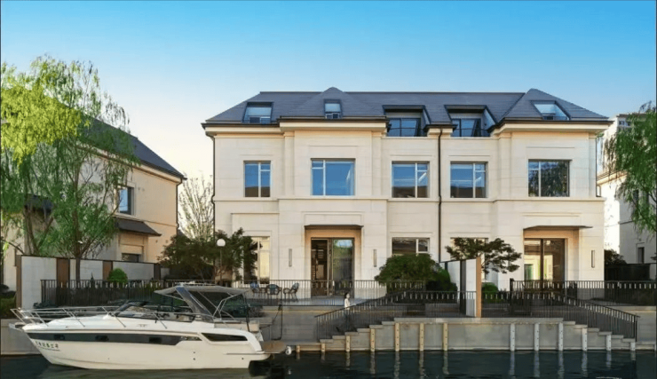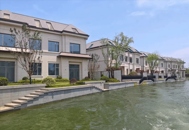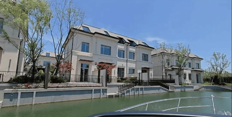 每一排别墅前都有一条渠道,引入水系,可!以!停!游!艇!