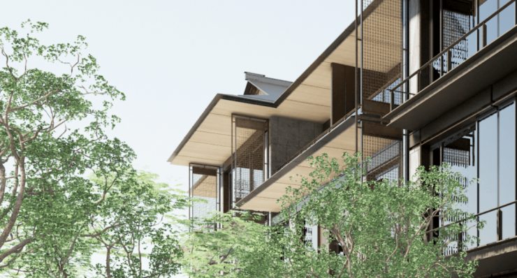 首先在立面上,强调极简美学,整体风格东方与现代完美融合,采用东方大屋檐,搭配大面积玻璃和简洁的线条,给人一种“无边界镜面”的通透感,轻盈又灵动。