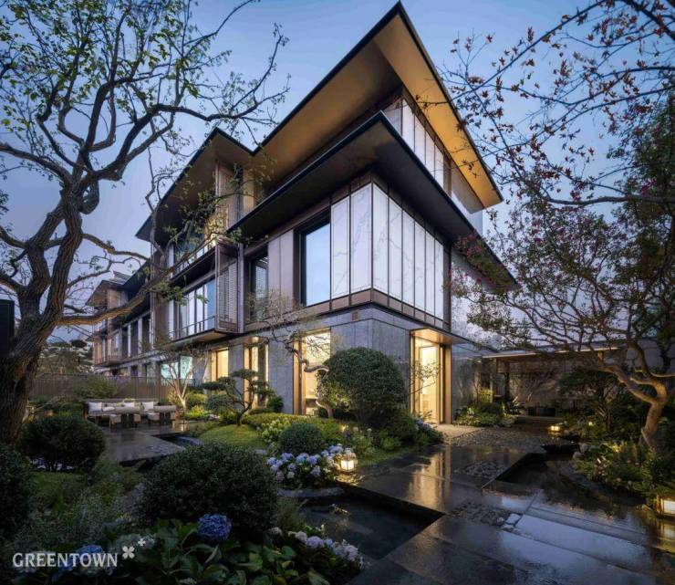 萃取苏州传统街巷格局,规划六重归家仪序,打造前街后巷、林荫环绕、曲折回转的都市谧境。承袭绿城“现代形、东方意”的审美基因,沿袭东方古典建筑最高等级故宫的重檐、歇山顶形制,以横向舒展线条和南北双立面设计,演绎东方美学的创新。