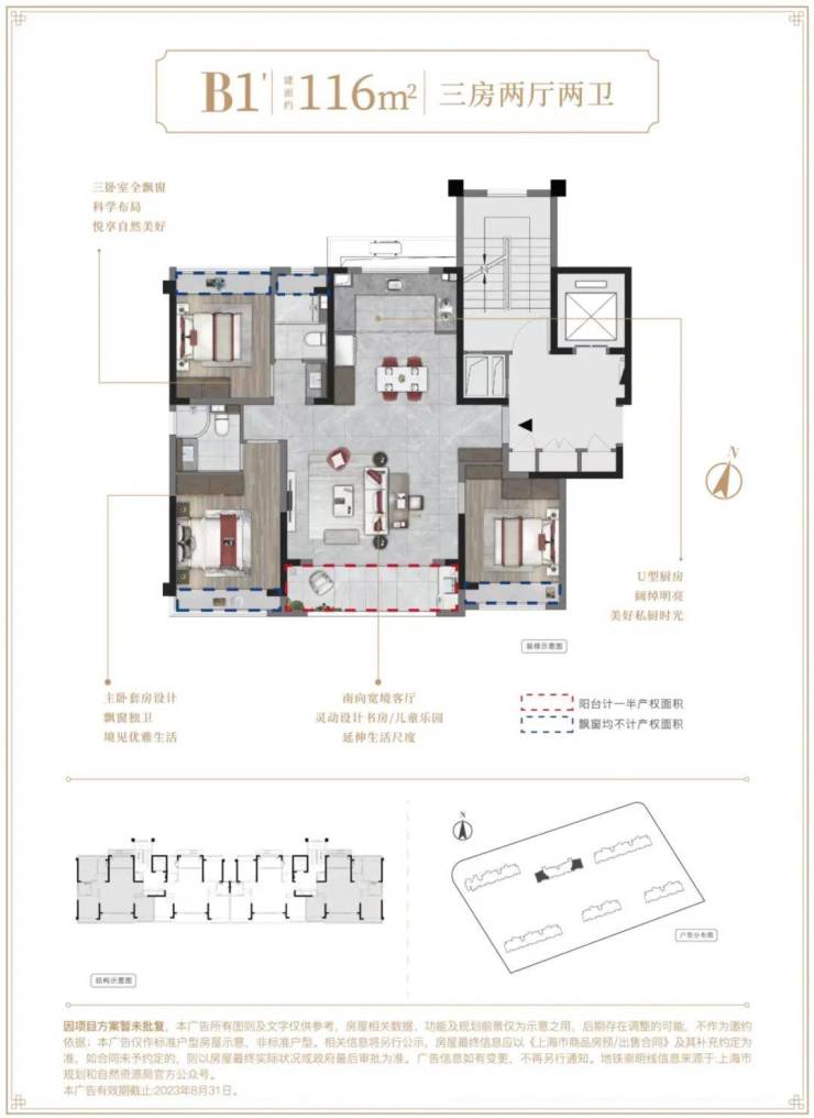 116m²户型特点:三卧室全飘窗,科学布局,悦享自然美好,南向宽境客厅,灵动设计书房/儿童乐园,延伸生活尺度,U型厨房,阔绰明亮,美好私厨时光,主卧套房设计,飘窗独卫,境见优雅生活。