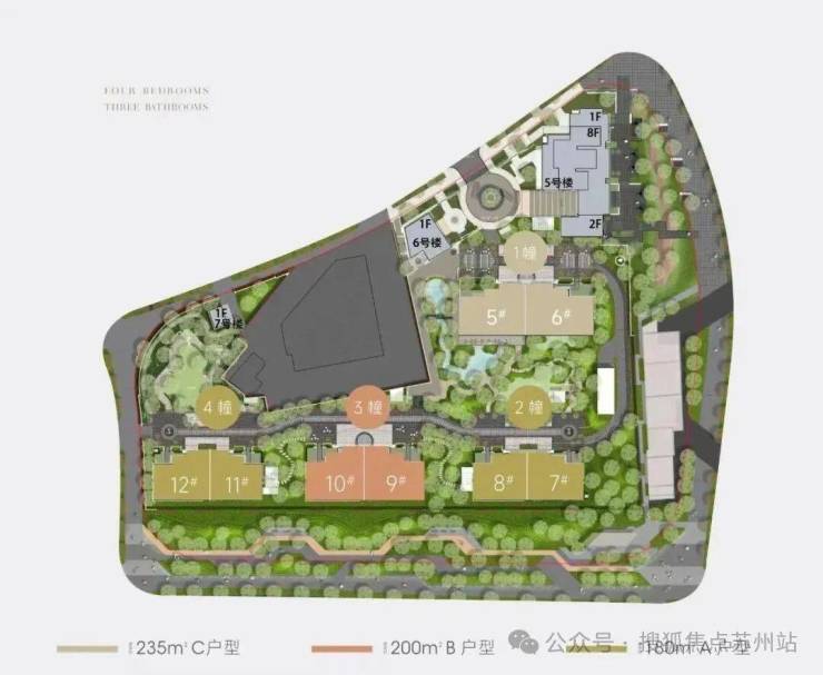 整个小区共有137套房源,户型分为180平、200平和235平三种,均为四房两厅三卫设计,全装修房。户型分布: