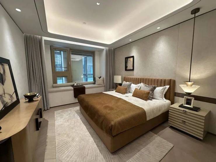 星级套房主卧,配备南北双飘窗+步入式衣帽间+独立卫浴,舒适度与私密性兼具!