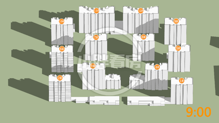 夏季:楼栋朝向正南采光优异。2#6#边户由于处于凹处位置,日照略有缺失。