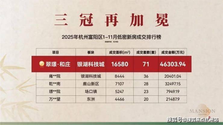 2024年及2025年1-11月富阳低密产品成交金额&面积&套数TOP1