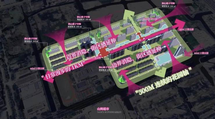 这些丰富的生活场景,则由两条景观轴线串联:一条是约300米的连续花园轴;一条是约600米的日常漫步街区。与此同时,项目在街角处还打造了多个口袋公园!