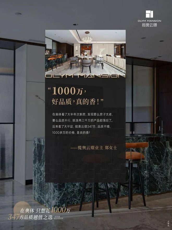 中邮·揽奥云璟位于杭州萧山区奥体、滨江、钱江新城核心三角区,总建筑面积约19万㎡,规划1栋自持商务办公楼及2栋大平层住宅(建面约310㎡/347㎡),共112户,梯户比2梯2户,精装交付,物业为中海物业。项目以约140米摩天高度成为奥体地标,融合东方美学与现代玻璃幕墙设计,定位为“原生大平层”高端住区。✅揽奥云璟售楼处电话:400-8558-224✅︎✅︎✅
