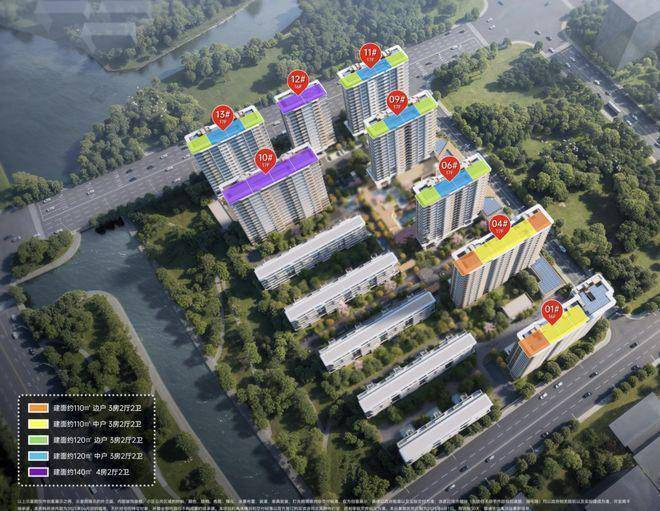 项目将推出建面约112㎡、122㎡、145㎡高层3-4房以及建面约160-165㎡叠墅,共计624套,其中112户型为一梯两户,122户型两梯两户。