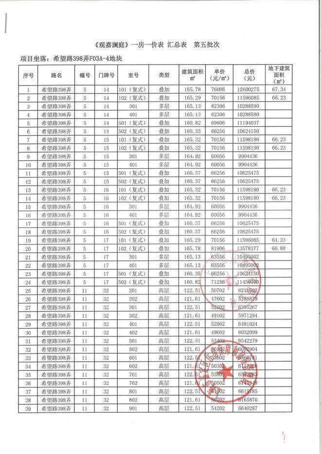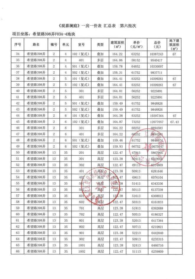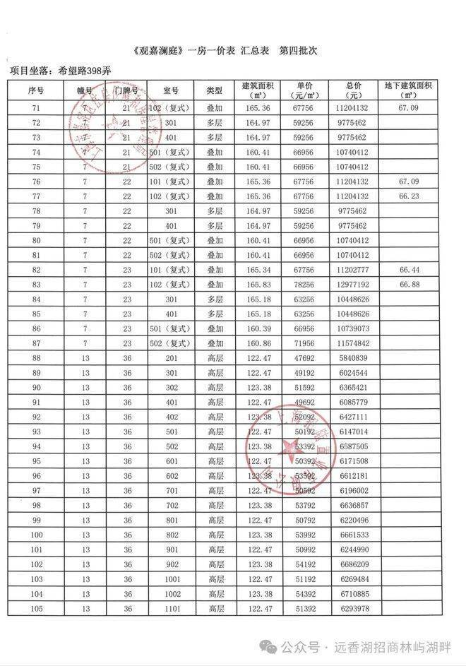 项目前期一房一价表