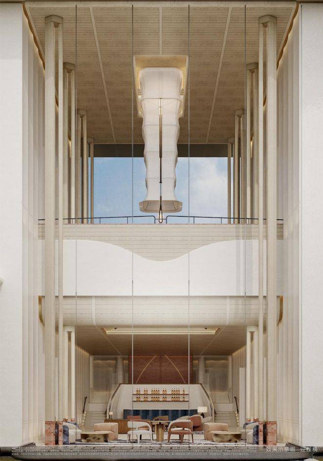 项目配建地上架空层泛会所+地下会所,以及下沉式庭院会所,打破人与空间边界的架空场域。会所设计整体空间祛除浮华矫饰,始终让景观以人为核心展开,整体景观规划以悬挑水池将⽔引⼊下沉⾃然⽔院,利⽤⽔幕链接,打造多层次景观,宛如⼀幅变幻的⽴体流动画作。会所区域配置风⾬连廊,以⽔景、绿篱、休憩平台串联,移步异景。