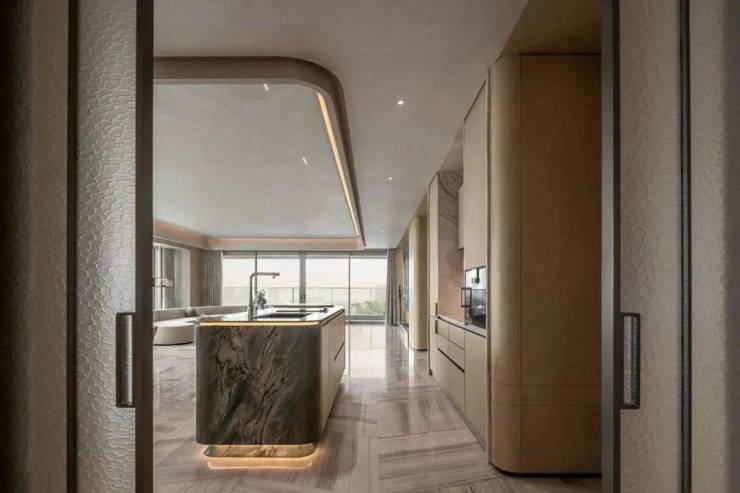 项目更是不惜重金打造了一个五星级地下车库,采用贯穿式鱼尾灯坡道和超耐磨地坪,过道全部是精装吊顶,地下管道和局部区域进行二次包裹!还设计了豪华车马厅,采用水磨石、水晶漆、铝饰面、大板砖、立柱石材包边、门禁系统三合一!归家仪式感打造上是炉火纯青!